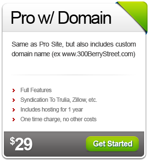 Every site includes a unique web address such as www.viewlisting.info/47 . Pro Sites W/ Domain include a fully custom domain name, such as www.121frontstreet.com